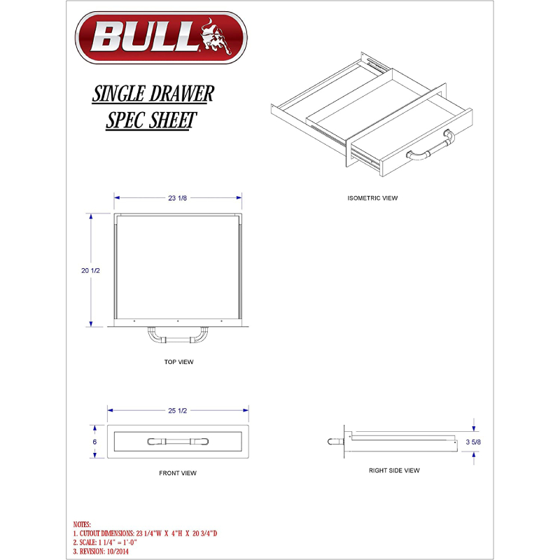 Bull Stainless Steel Standard Single Drawer Spec Sheet