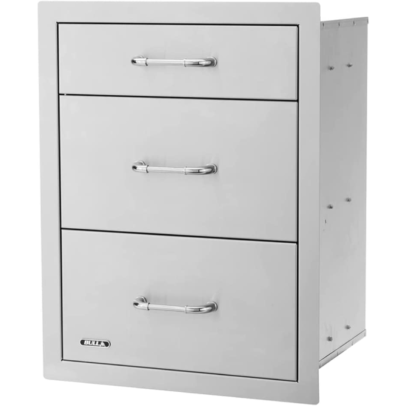 Store grilling accessories and outdoor cooking necessities in this high quality, stainless-steel triple drawer system. Built to last, The Bull Triple Drawers System is fully enclosed with durable construction for maximum protection from the elements. This storage solution has been sophisticatedly designed for comfort and ease of use.