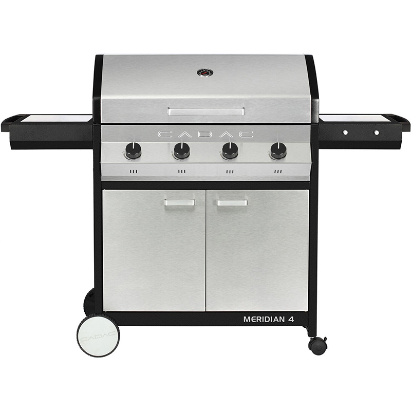 - OUTDOOR BBQ GRILL WITH CART: The Cadac Meridian 4 gas grill has a dome lid double-lined with stainless steel for better heat retention and an enclosed 2-door cart with hidden propane tank storage