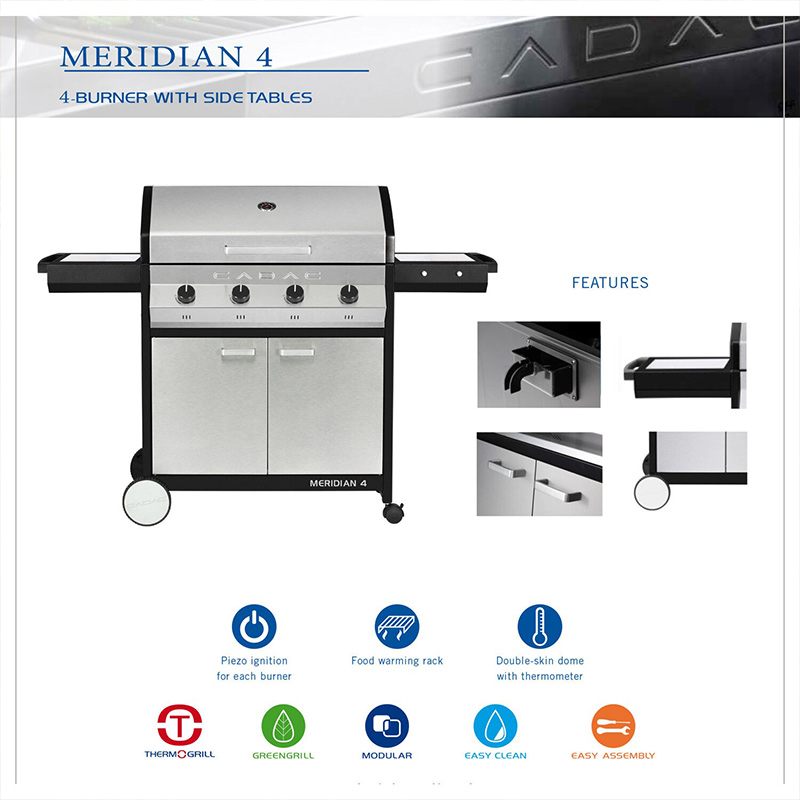 Cadac Meridian Freestanding 4-Burner Gas Range Grill Features: