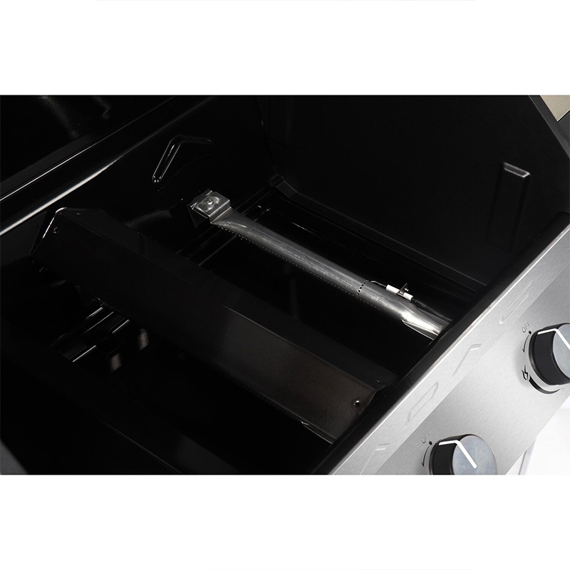 - 4 high-performance 439-grade stainless steel burners with flame tamers and automatic piezo ignitions