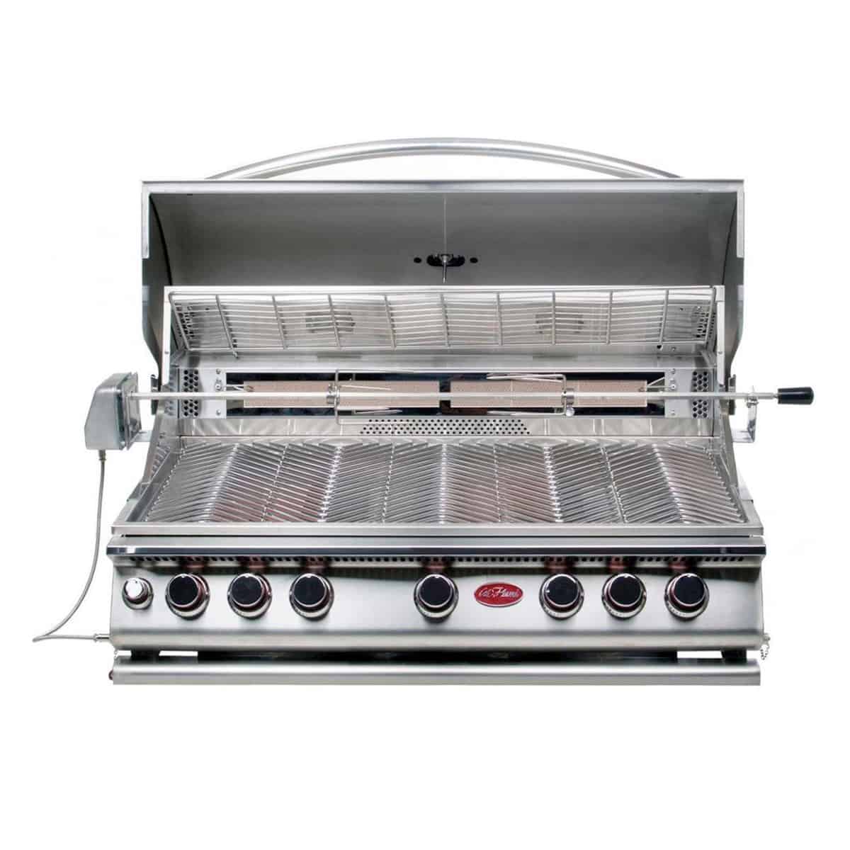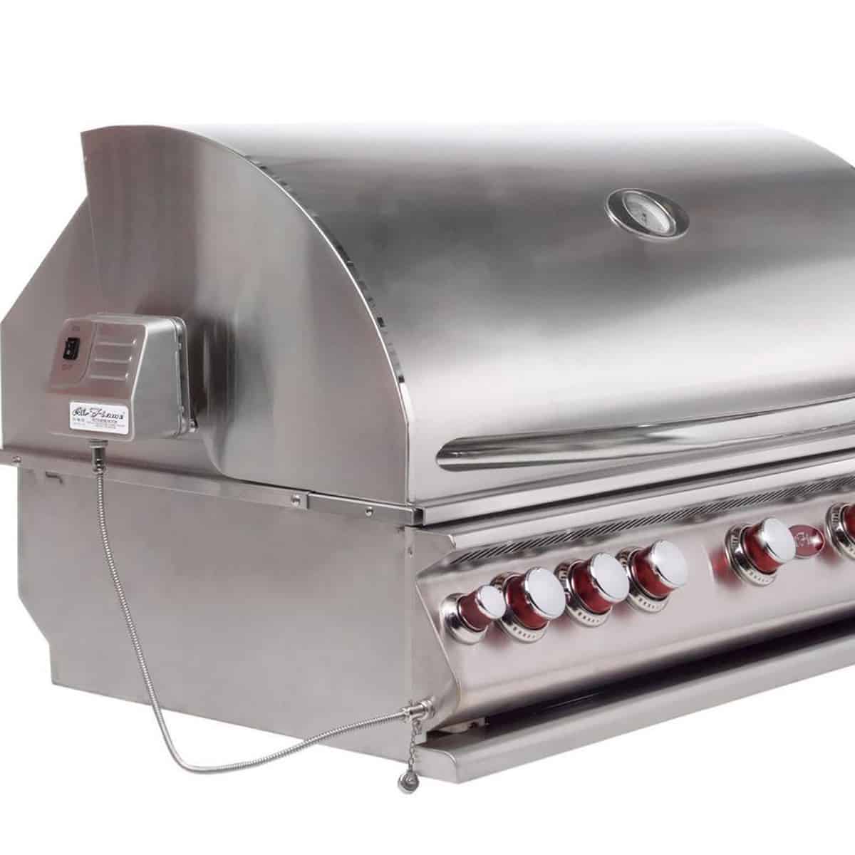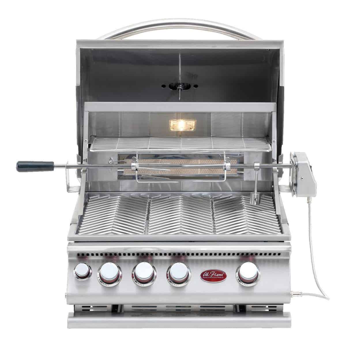 - Conveniently connects to one of the 12-Volt outputs on either side of your Cal Flame drop-in grill