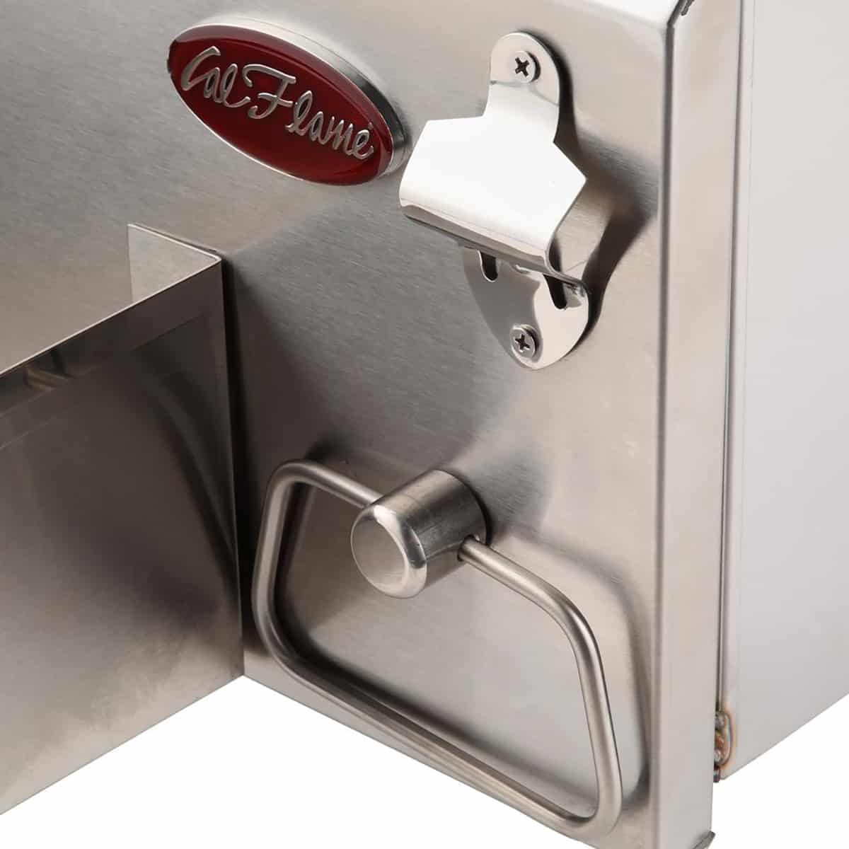 - Includes bottle opener and towel holder
