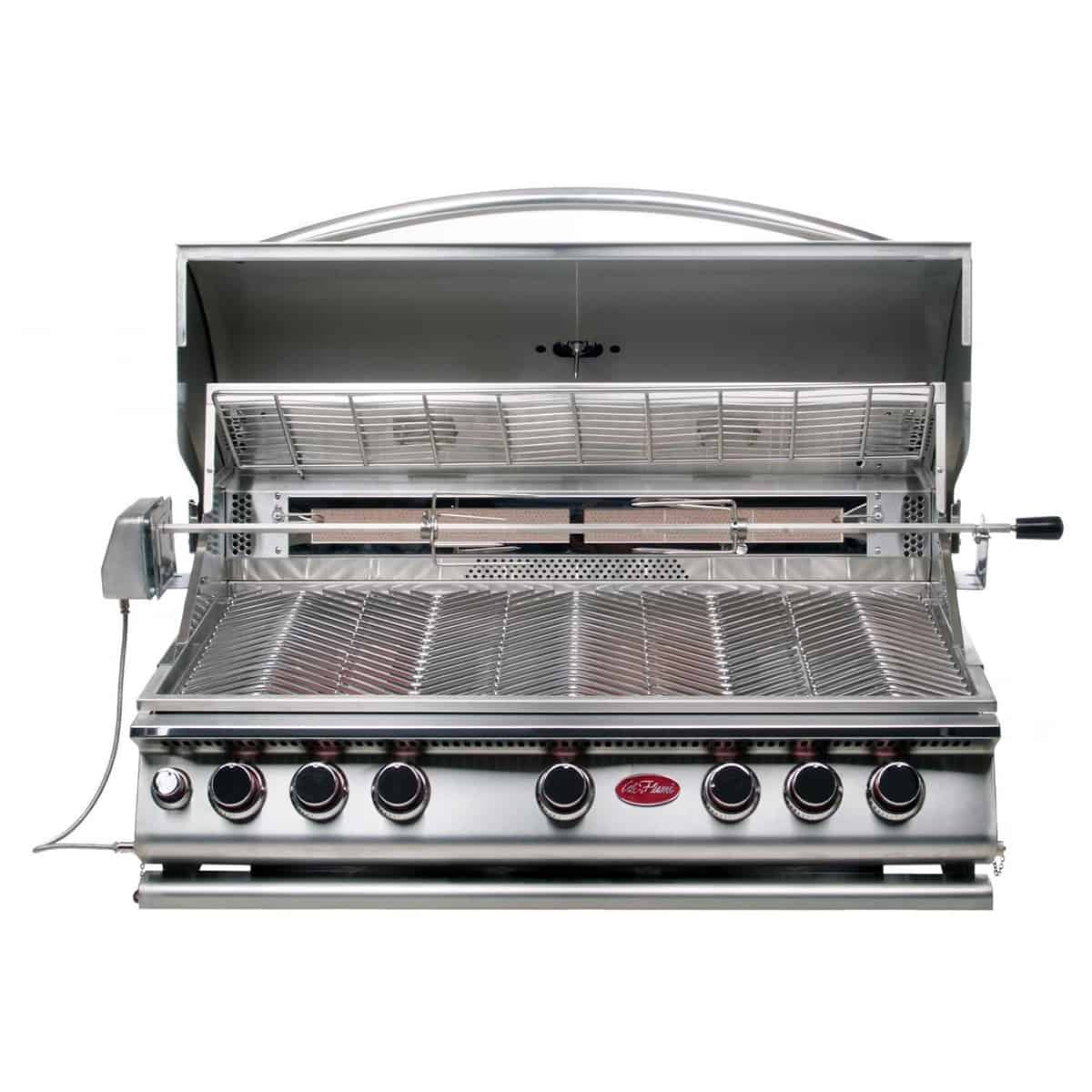 An industry-first, the Cal Flame Built-In 5 Burner Convection BBQ Grill, constructed of 304 stainless steel features five (5) cast stainless steel burners and a powerful centrifugal fan that uniformly circulates heat 95,000-BTUs throughout the grilling area. The result is 50% quicker grilling over 1,000 sq. in.