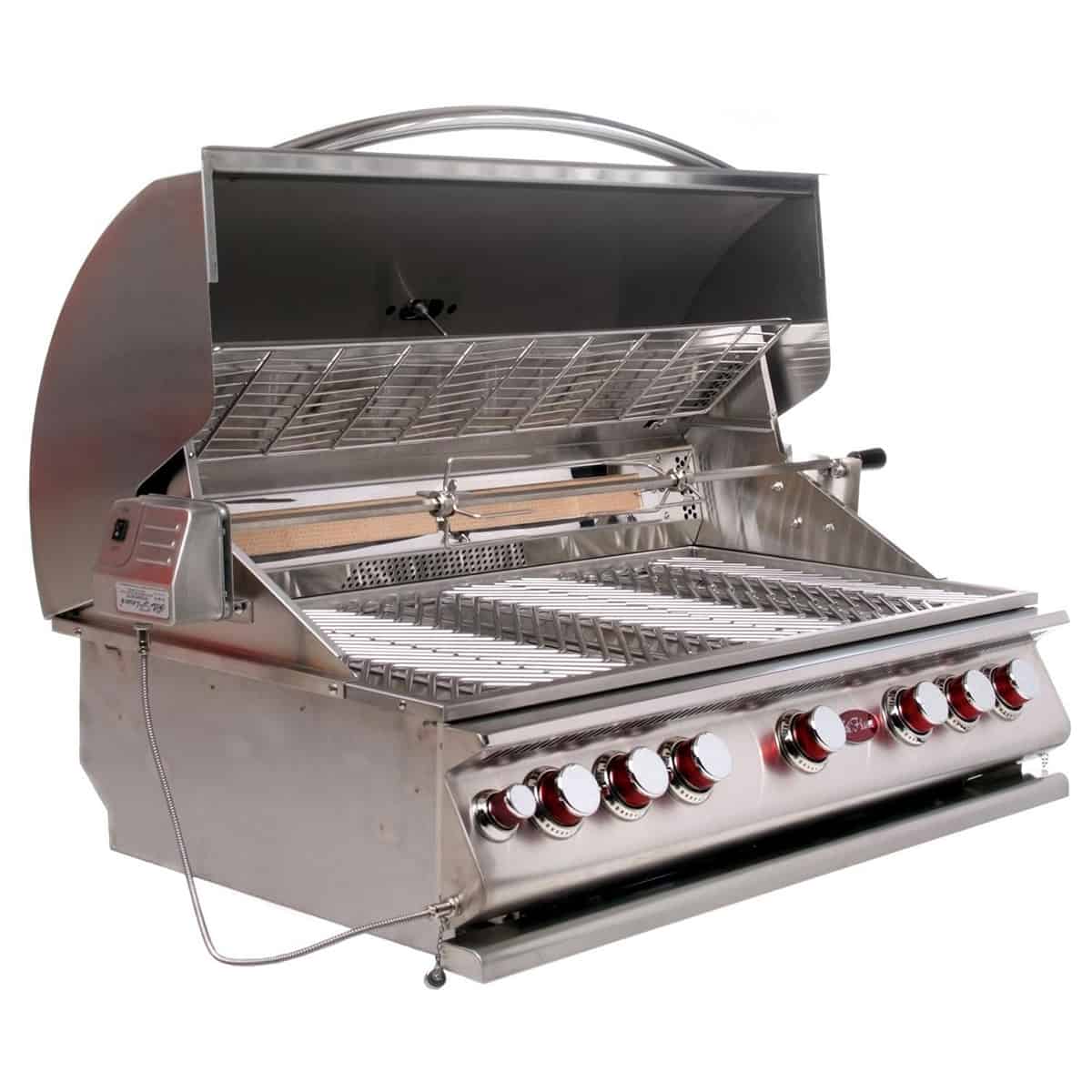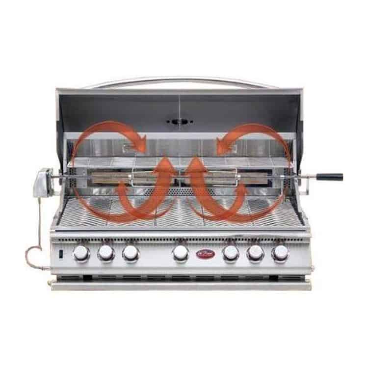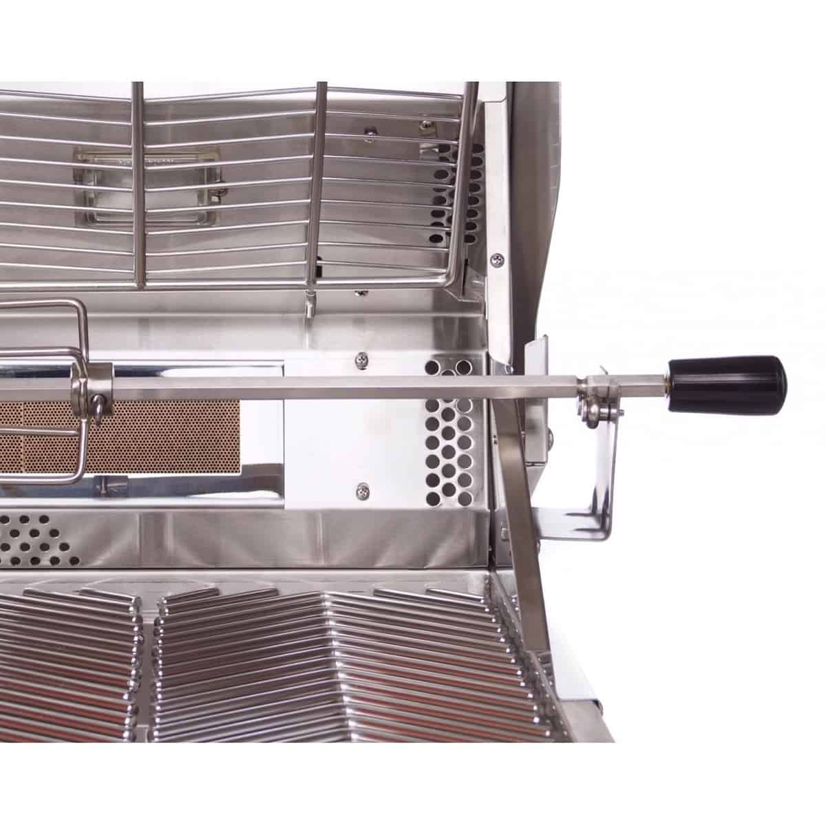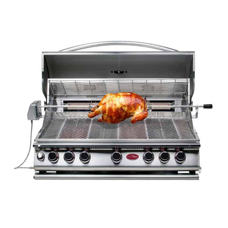 | Dual Halogen Interior Lights | Rotisserie with Adjustable Motor Mount | Exclusive Knobs with multi-colored LED Bezels | Griddle Tray |