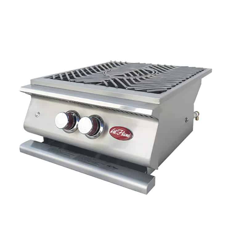The NEW Cal Flame Drop-In Power Burner is a specialty-cooking surface that is used to cook with a high BTU output ideally for large pots. The Cal Flame Power Burner has a total of 60,000 BTU. With an external burner (using 35,000 BTU) and an internal burner (with 25,000 BTU). The Exclusive Cal Flame Stainless Steel Knobs come standard with an independent blowtorch ignition system and (2) LED lights on the splashguard to safely see at night. The Cal Flame Power Burner and Grill Cover is made with Durable 304-Stainless-Steel Construction. The Grill Cover is removable to accommodate large cooking pots. The Grates are heavy-duty with a V-Grate design. Additionally, the center is removable to cook with a Wok. Add this drop-in accessory to any BBQ Island and take your gourmet cooking to the next level!