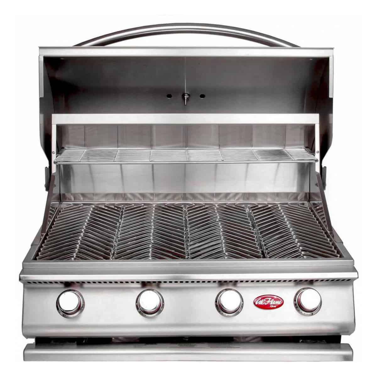 The Cal Flame G Series offers a roomy Cal Flame G Series Built-In 4 Burner BBQ Grill with cooking power of up to 60,000 BTUs and features a convenient full-width drip tray. 1-piece handle and four cast porcelain burners with independent ignitions. Take your outdoor kitchen up a notch with the G4 Grill. Solid 430-stainless steel construction. Cast iron burners emit 60,000 BTU and have a one year warranty. Get gourmet results in half the time!