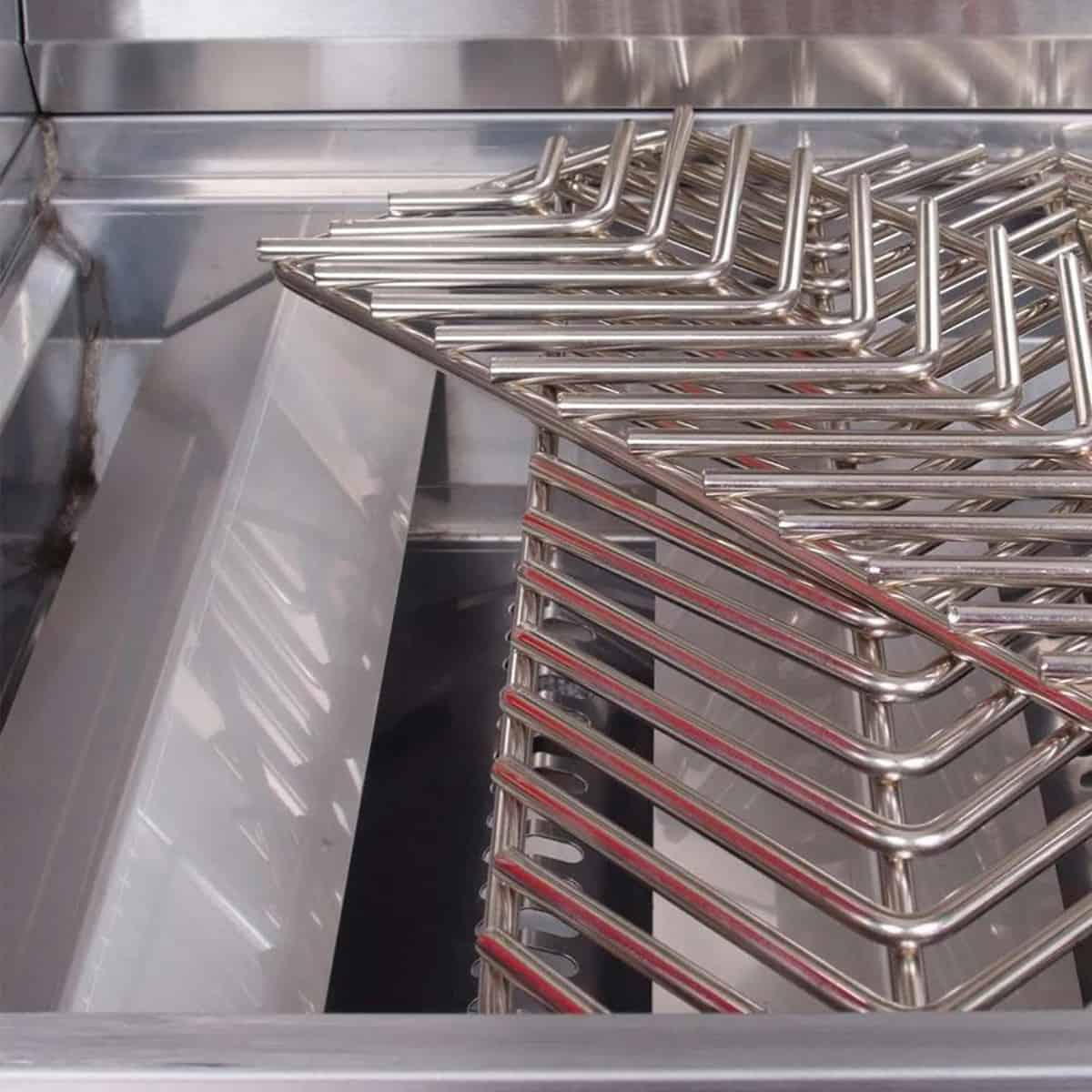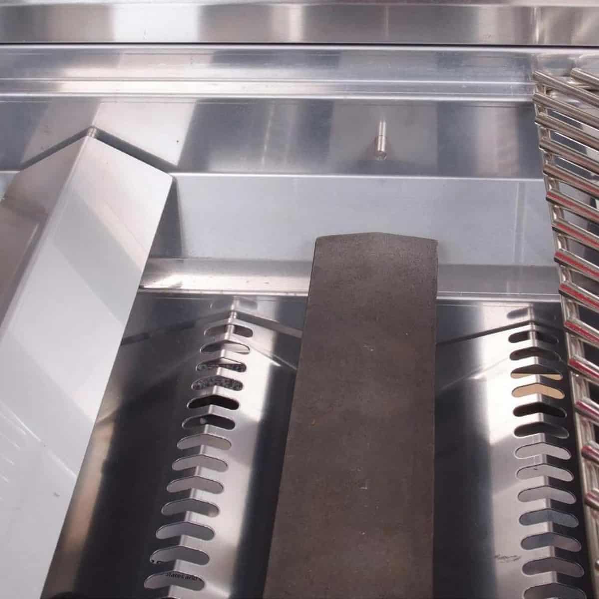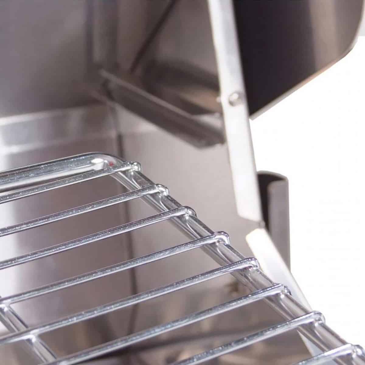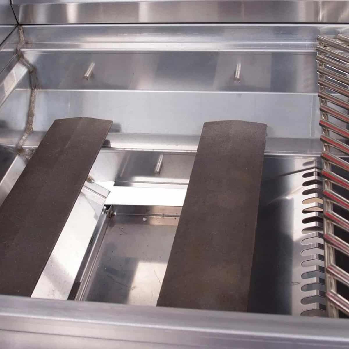 | Double Layered Welded Hood | Two-Position Full-Width Warming Rack | Cast Steel Burner | Full-Width Stainless Steel Drip Tray on Rollers |