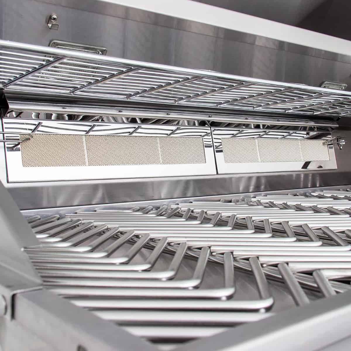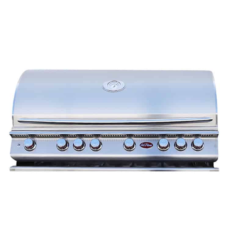 The Cal Flame P Series Built-In 6 Burner BBQ Grill – An industry-first 6-Burner Convection Grill is the ultimate chef’s dream for outdoor grilling! Made with commercial-grade materials and construction design with double-walled welded structure and polished stainless steel finish makes this a grill to last. It has a total of 110,000K BTU output with six(6) burners, two(2) infrared burners, can hold up to 35lbs full-sized rotisseries, flavor bar seals, v-grates, full-width warming racks, large thermometer, drip trays, grill lights, dishwasher-friendly parts and so much more!