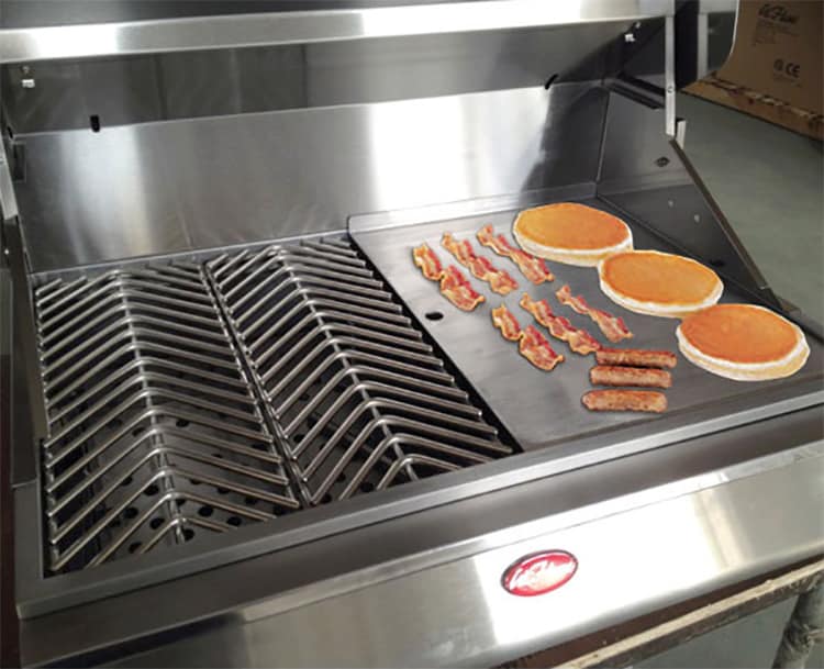 | Dual Halogen Interior Lights | Removable Heavy-Duty V-Shaped Cooking Grate | Independent Burner Ignition System | P- Smoker Box/P- Griddle Tray/Grill Cover |