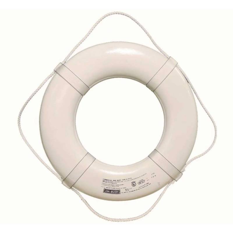 These Jim-Buoy rings derive their strength from a metal ring, encased in soft buoyant foam. Will not rot. Available in white or orange. A United States Coast Guard-approved life ring is a necessity for any public or commercially operated pool.