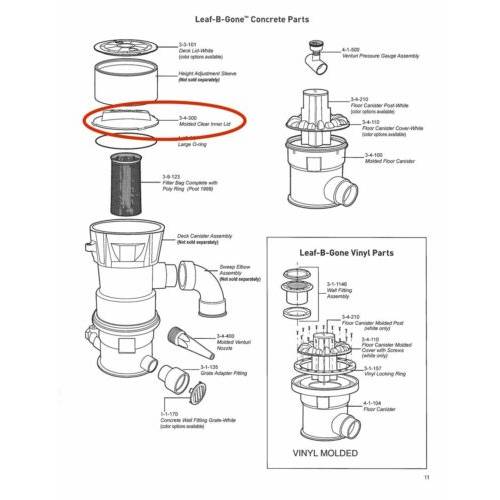 The Caretaker 3-4-300 Zodiac Molded Inner Lid For Polaris Leaf-B-Gone In-Floor Pool Cleaning System; Clear. Larger debris such as leaves, twigs, and bugs will eventually end up in your pool and can damage your filter or inhibit water flow. By utilizing a safe, venturi-powered main drain system like Leaf-B-Gone you can prevent this type of debris from getting into your pool circulation system. With simple deck access, Leaf-B-Gone doubles the filtering process to safely and effectively remove debris before it enters your pool’s system.