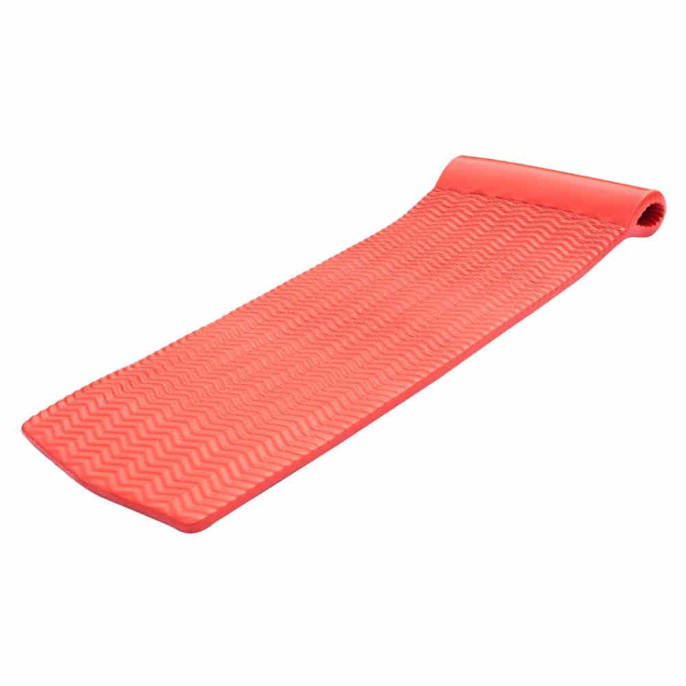 The Caribbean Coral Serenity Pool Float is soft and everlasting. You can feel the difference compared to other foam lounges, the thick, soft, closed-cell, vinyl coated foam provides unmatched comfort and durability. The exceptional quality of the foam used in this float increases buoyancy. The closed-cell foam will not Burst, lose air, or absorb water. Includes a full-roll pillow that provides additional buoyancy for the head and shoulders. The vinyl coating resists sun, chlorine, and saltwater and is easy-to-clean. The rippled texture cools you off even on the hottest summer day. Manufactured using eco-friendly best-practices including responsible recycling makes this float one that you can feel good about owning. This pool float will provide years of enjoyment, relaxation, and fun.