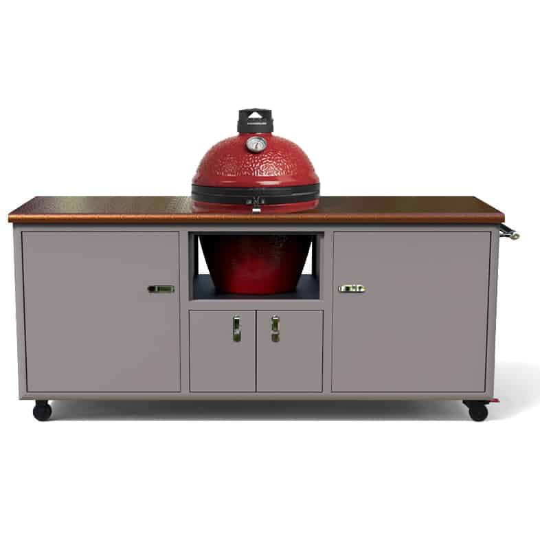 The Challenger 76″ Torch Cart for Kamado Joe Classic II does it all with a vast tabletop for abundant food prep space, centrally located grill for easy serving, and several additional features – including plenty of storage space with two spacious cabinets and even space under the grill for utensils, charcoal, or anything else you might need. This mid-size Torch is a favorite among ceramic grillers because of its convenience, durability, and flexibility. Expansive countertop. Large weatherproof storage cabinet to hold charcoal and grilling essentials.