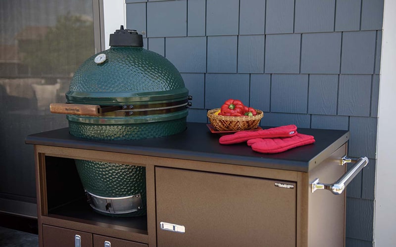The TORCH is a weatherproof, low-maintenance cabinet to support your ceramic grill. It features dry-sealed storage to protect all your grilling and outdoor kitchen equipment. We offer sizes to fit various ceramic grill manufacturers. With its durable casters, the Torch makes it easy to move your ceramic grill.