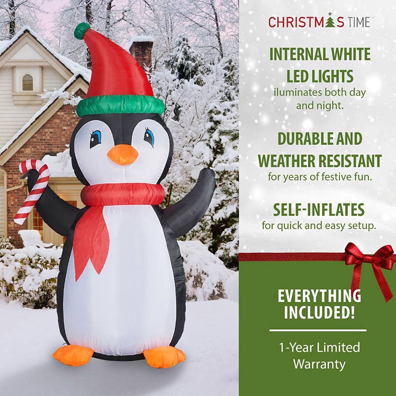 Christmas Time 10′ Inflatable Penguin Lights Features: