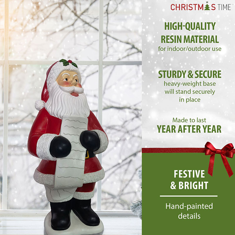 Christmas Time 36″ Resin Traditional Santa Holding List Features: