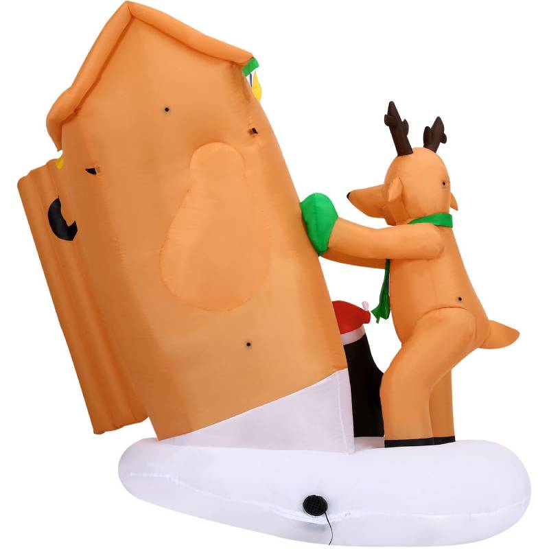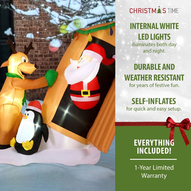 Welcome guests and the holiday season with a pre-lit jumbo inflatable from Christmas Time. Celebrate with one of our festive, air blown inflatables or collect them all to design your very own winter wonderland. Brighten your lawn, garden, backyard, open porch, or deck with this 4-ft. pre-lit inflatable Santa Claus in an Outhouse, and get ready to spread some holiday cheer. This eye-catching decoration will draw visitors to your home through sheer Christmas magic, with a little help from its colorful design and impressive size.