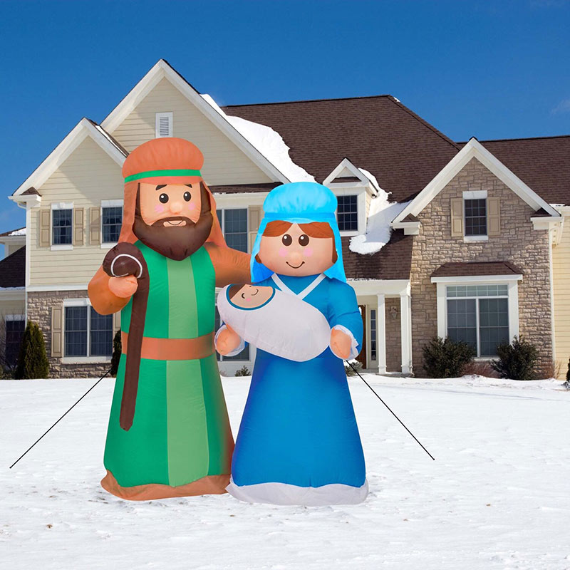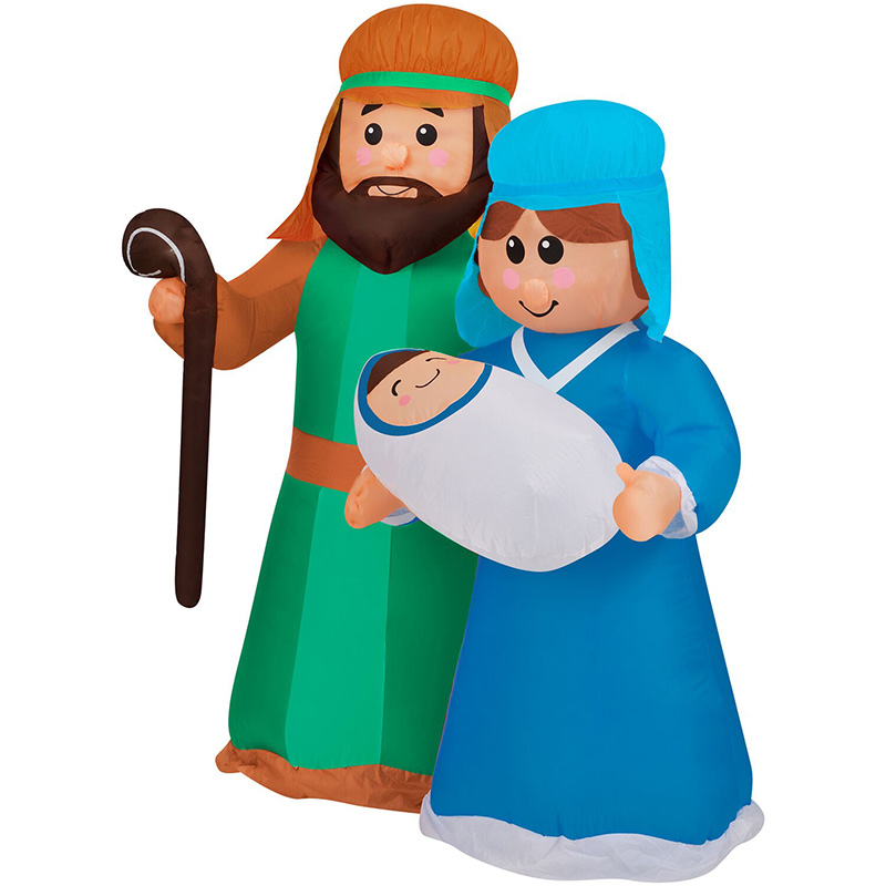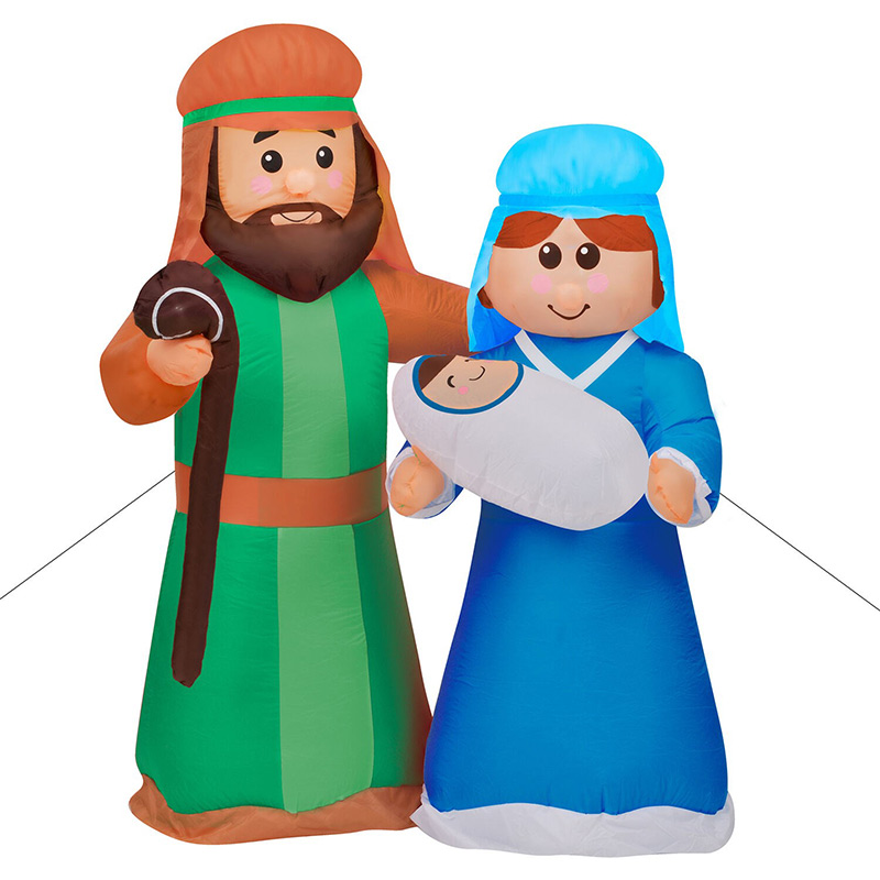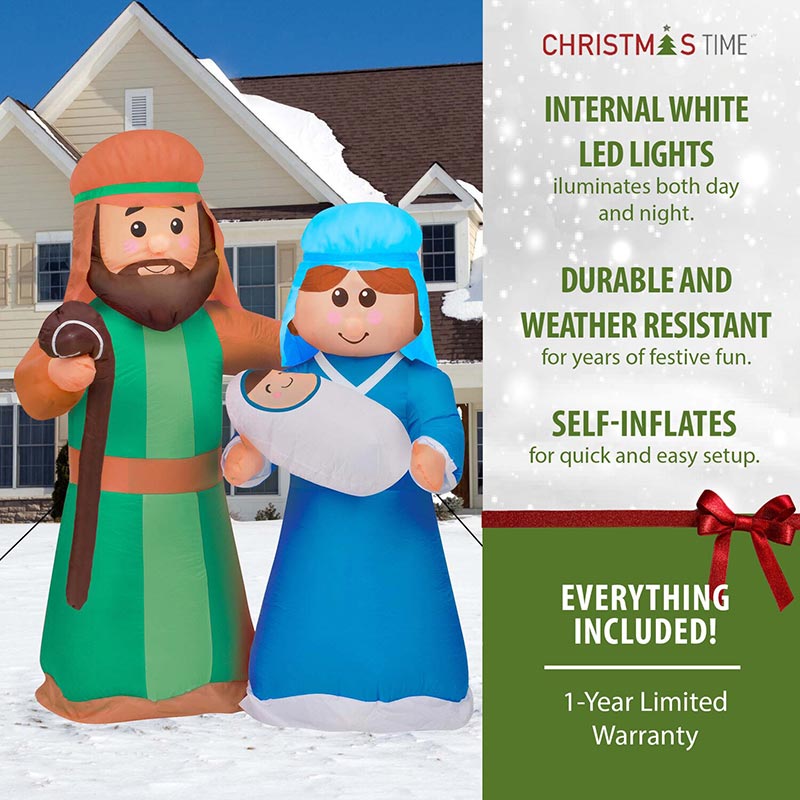 - Inflatable Holy Family of baby Jesus, Mary, and Joseph who illuminate day and night with 6 internal white LED lights