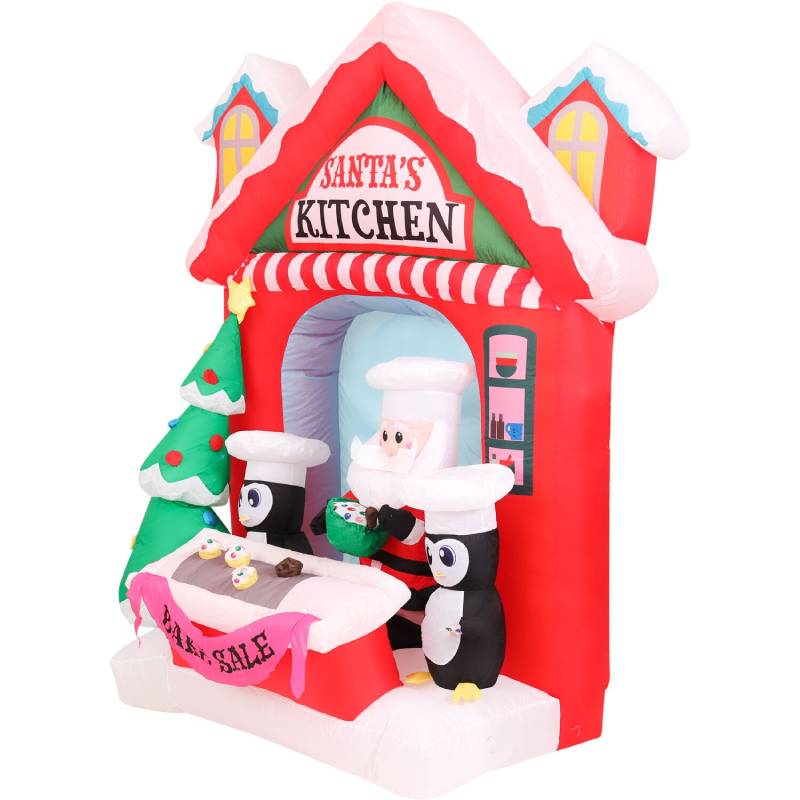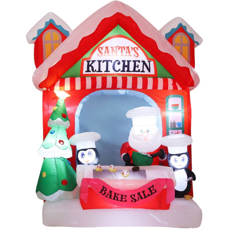 Welcome guests and the holiday season with a pre-lit jumbo inflatable from Christmas Time. Celebrate with one of our festive, air blown inflatables or collect them all to design your very own winter wonderland. Brighten your lawn, garden, backyard, open porch, or deck with this 7-ft. pre-lit inflatable Santa’s Kitchen, and get ready to spread some holiday cheer. This eye-catching decoration will draw visitors to your home through sheer Christmas magic, with a little help from its colorful design and impressive size.