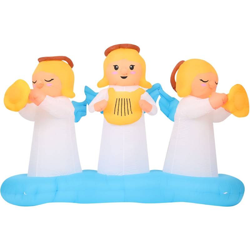 Welcome guests and the holiday season with a pre-lit jumbo inflatable from Christmas Time. Celebrate with one of our festive, air blown inflatables or collect them all to design your very own winter wonderland. Brighten your lawn, garden, backyard, open porch, or deck with this 8-ft. pre-lit inflatable Angel Trio, and get ready to spread some holiday cheer. This eye-catching decoration will draw visitors to your home through sheer Christmas magic, with a little help from its colorful design and impressive size.