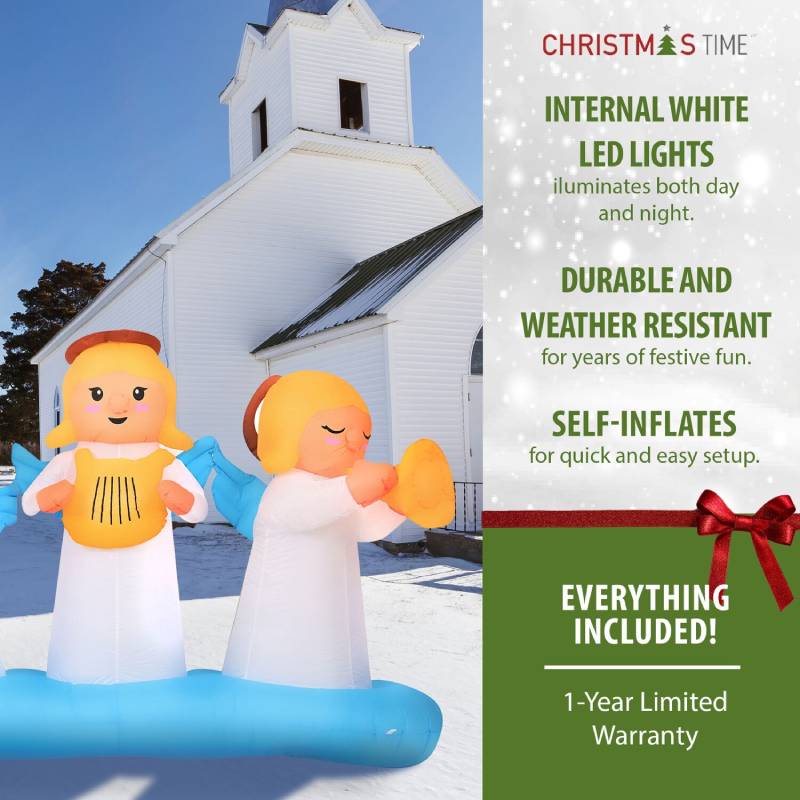 Christmas Time 8′ Inflatable Angels with Lights Features: