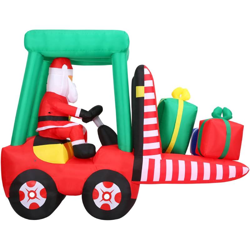 - 6-ft. pre-lit inflatable Santa Claus in a Fork Lift with 5 internal white LED lights by Christmas Time