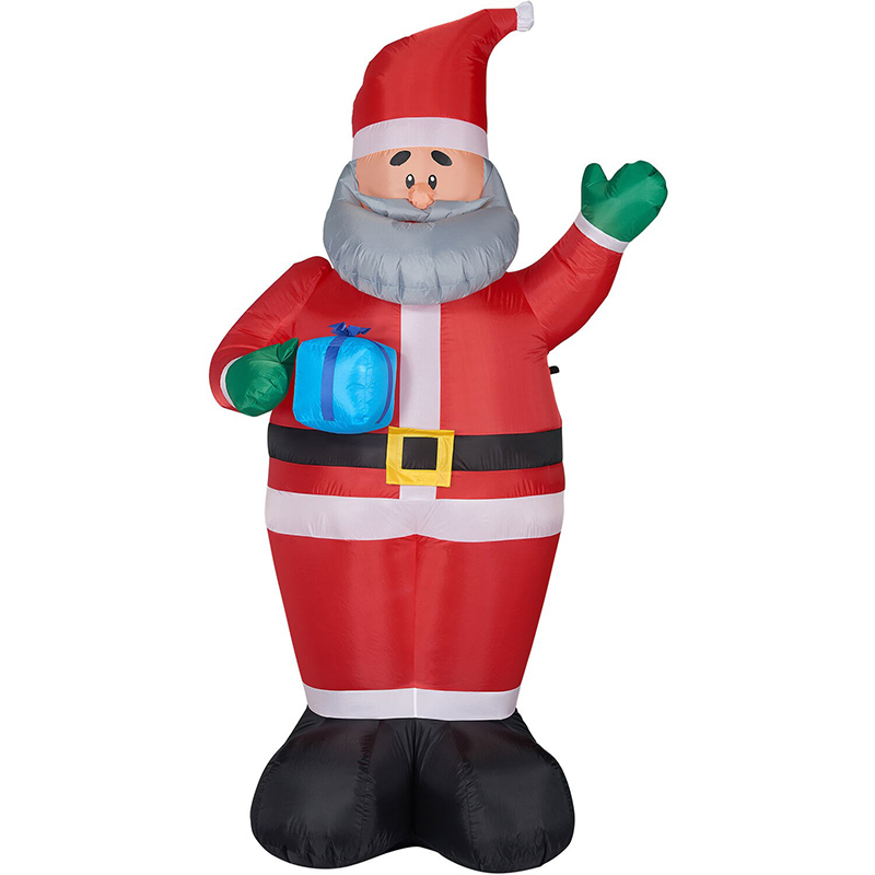 - Inflatable Santa holding a gift illuminates day and night with 4 internal white LED lights
