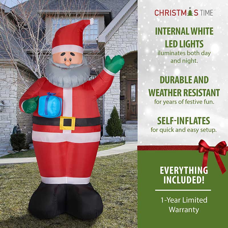 Christmas Time 8′ Inflatable Santa with LED Lights Features: