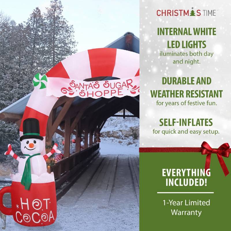 - 9-ft. wide pre-lit inflatable Candy Cane Arch with 5 internal white LED lights by Christmas Time