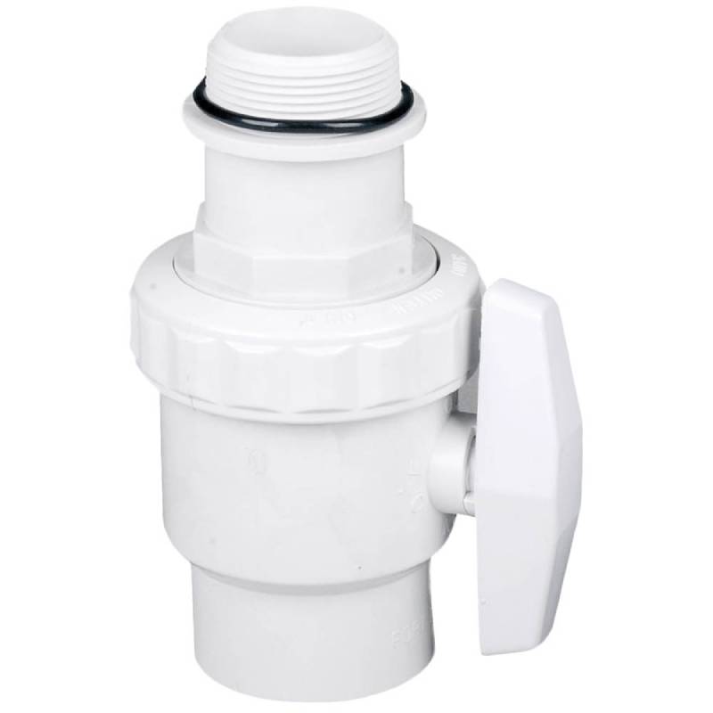 The CMP Custom Molded Products , Two-Way Ball Valve Unionized 1.5″ MPT x FPT, Color: White, Size: 1.5″