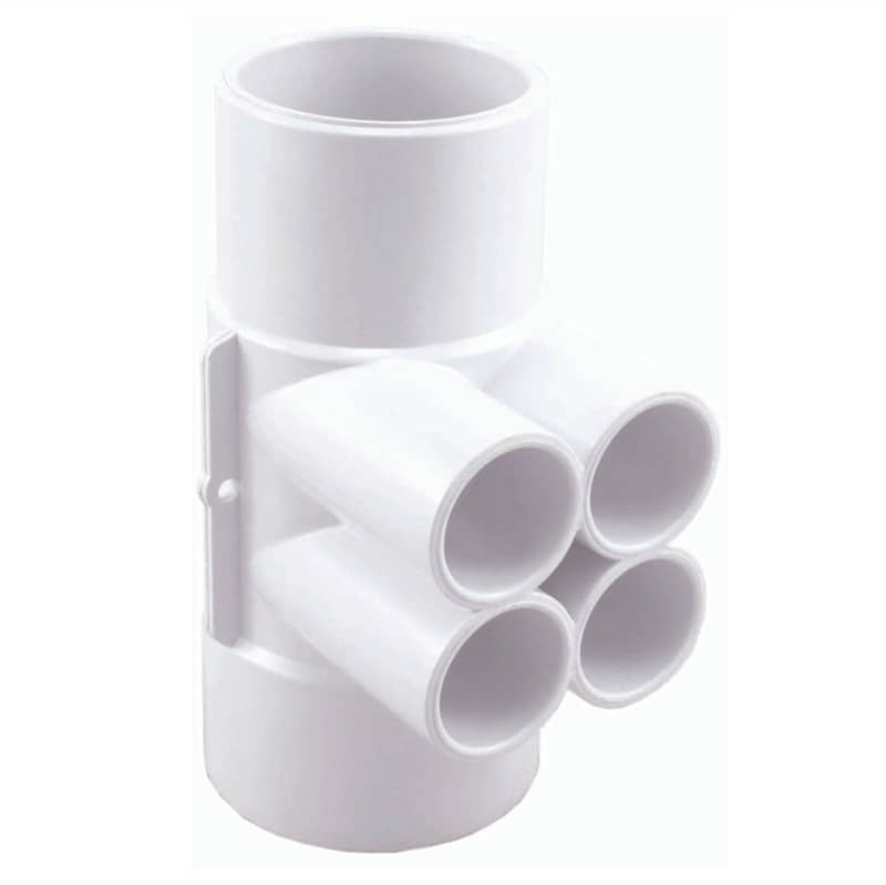The 21120-040-000 2″ x 2″ SxSPG Four .75″ Slip Manifold has 4x 3/4 inch slip connections for 3/4 inch inner diameter flex hose. This product has a 2 inch spigot on one end and 2 inch slip connection on the other. This CMP product accommodates 4x 3/4 inch hoses to hot tub jets and plumbing lines. This manifold fits QCA Spas and other brand hot tubs.