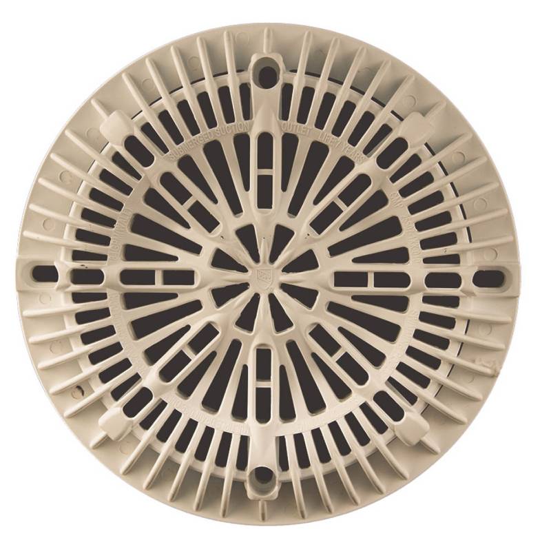 The CMP 25548-009-000 Main Drain Ring with Galaxy Anti-Vortex Lid; 8 Inch, Tan.