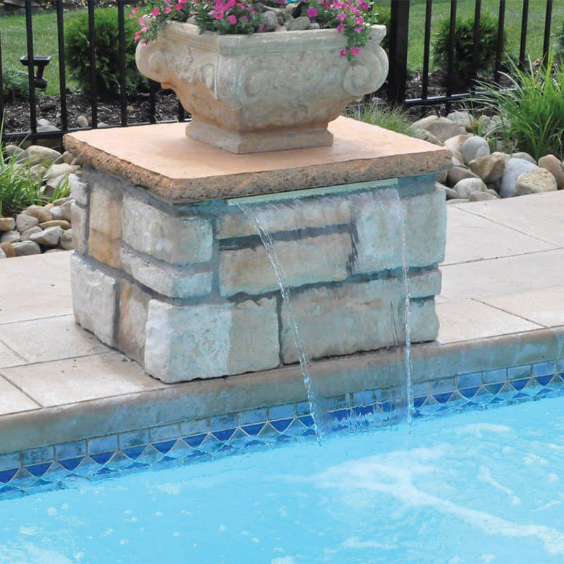 Natural Wonders Waterfalls are available in four styles four different colors including clear. There is no limit to water feature design with this timeless waterfall collection.