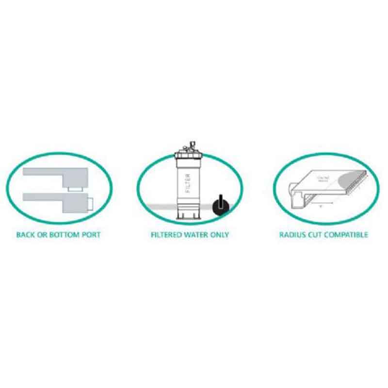 - May be Adjusted from a Peaceful Clear Falling Sheet of Water to a Bold, Thundering Water Feature that Adds Excitement and Style to Any Project