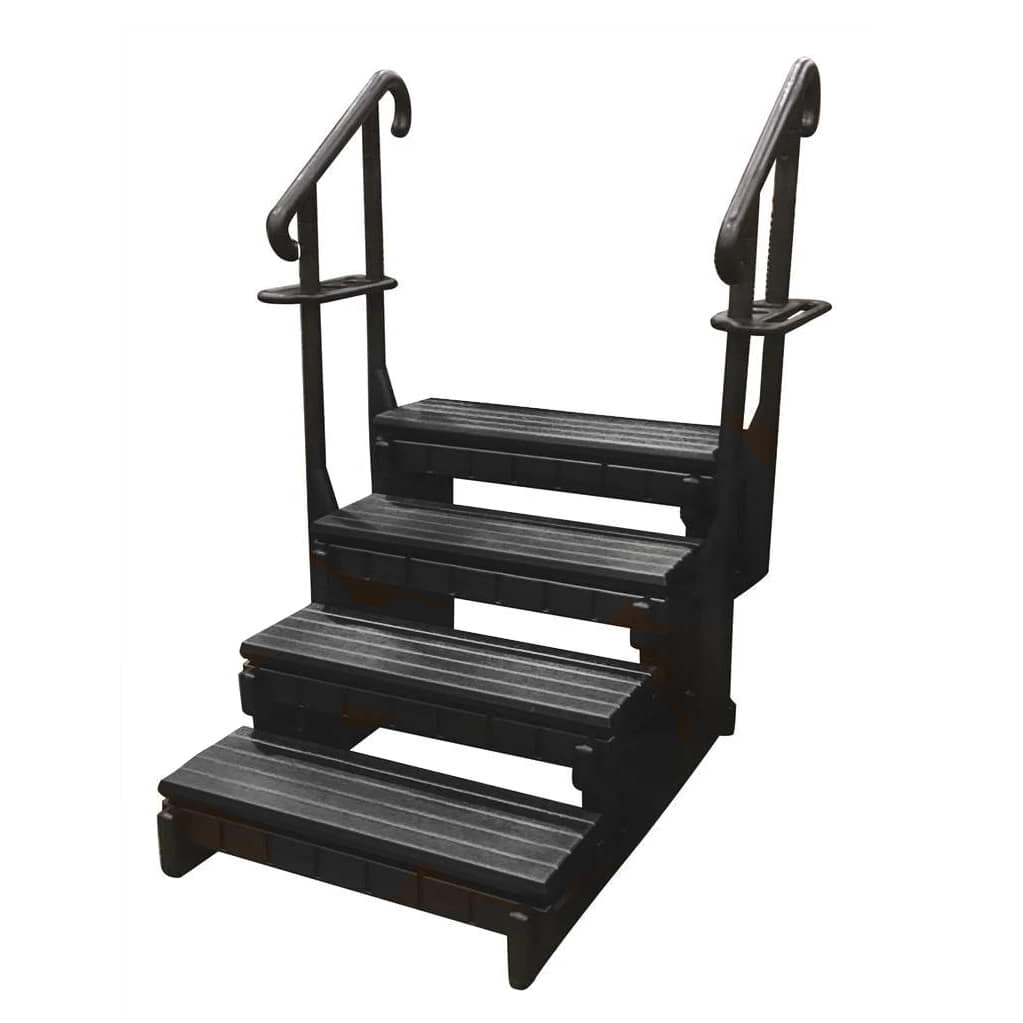 Awkard spa entry and clumsy exits are a thing of the past with Confer Signature 4-tread spa steps. Featuring elegant dual handrails and 36″” wide non-skid treads, this step measures 32″” tall to the top step. The additional step and added height is ideal for taller hot tubs and swim spas. Confer is a leader in extrusion and rotomolding for above ground pool steps and ladders, so its only natural they would create their own spa step.