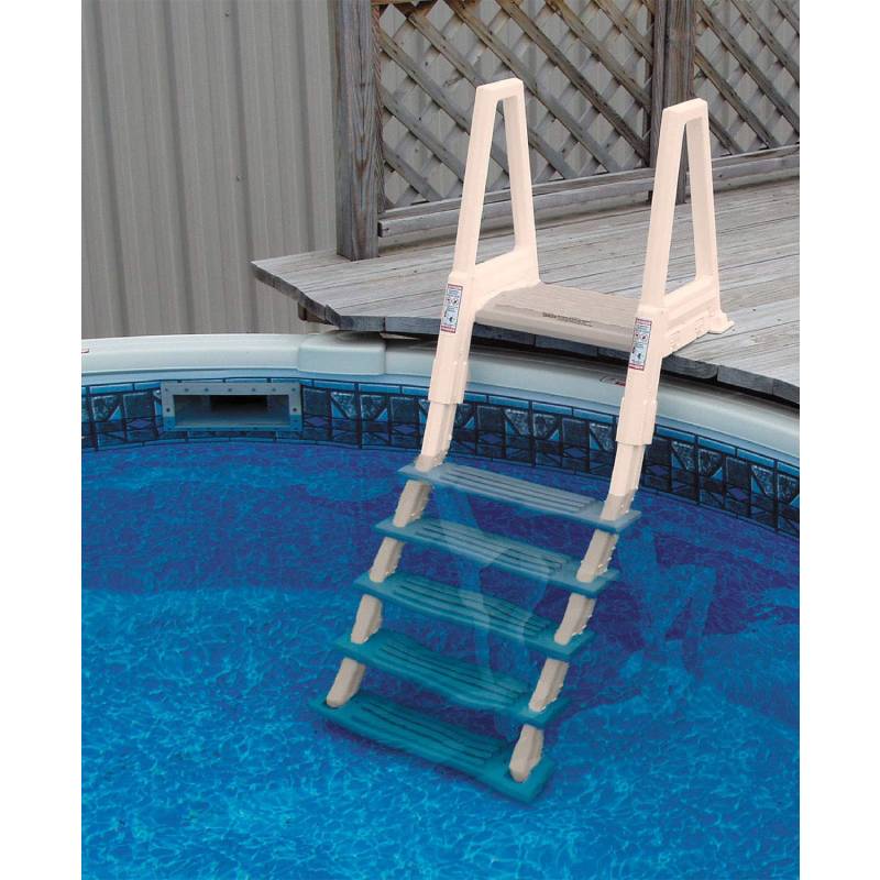 The Confer Plastics 6000X Series Inpool ladder is a deluxe heavy duty in pool lader. The ladder features a an anti-entrapment barrier, has a flat treads for easier climbing and totally adjustable for deck heights from 48-54″. The Confer 6000X includes a deck platform, has white side rails with grey treads for high visibility. The Confer ladder made of strong, solid construction for years of use!