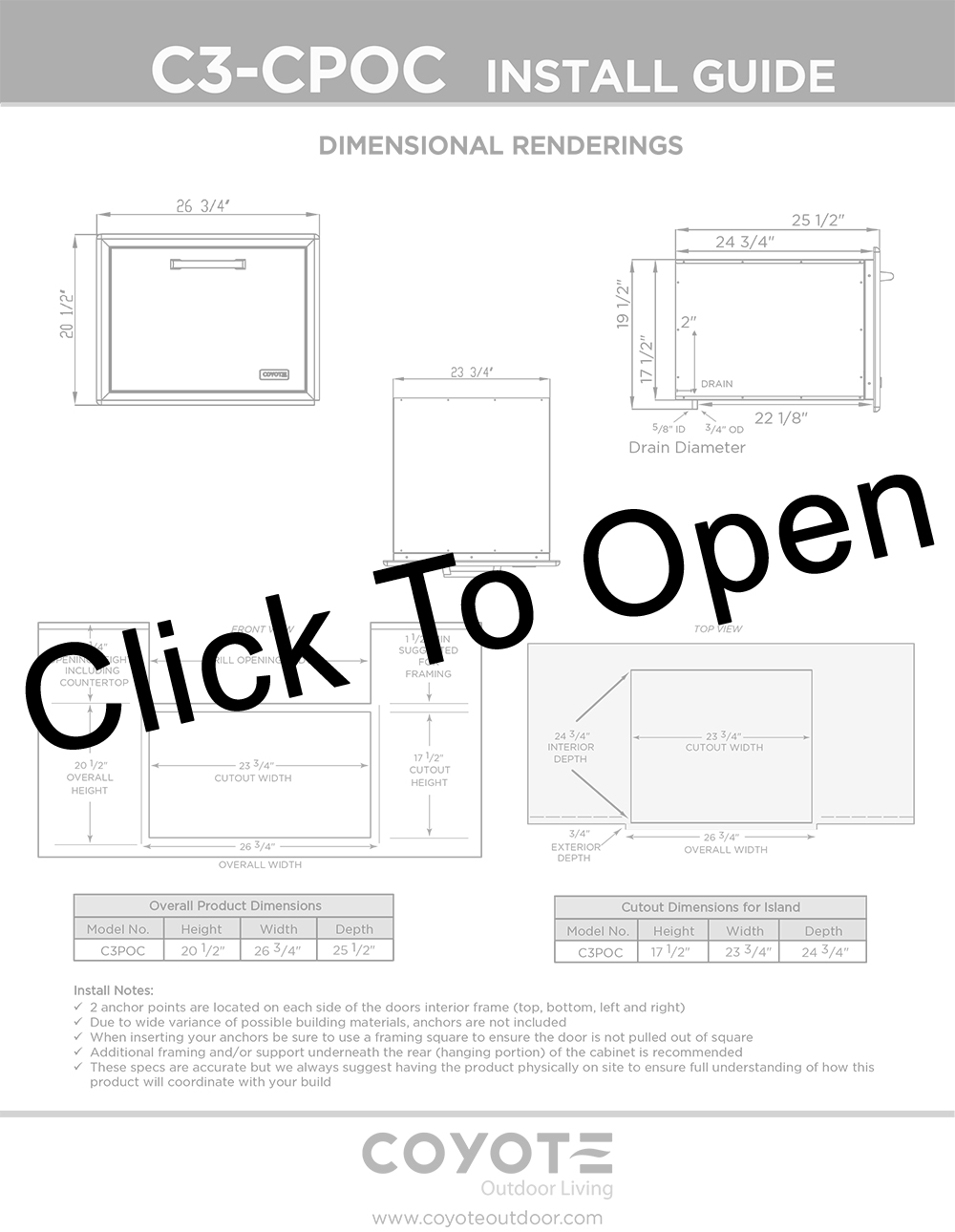 - Cut-Out Dimensions: 23-3/4″ W x 17-1/2″ H x 24-3/4″ D