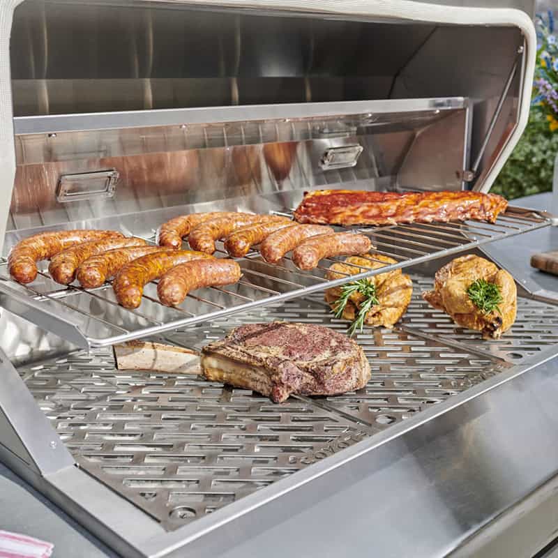 - Included: Individual smoke & sear grate, and 3 food-grade temperature probes