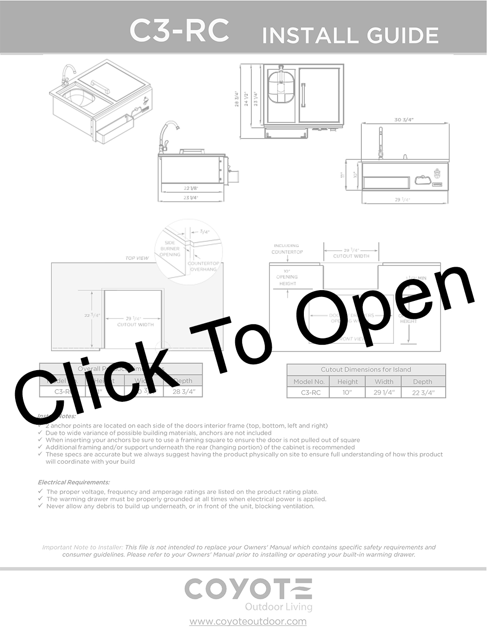 Coyote 30″ Built-In Refreshment Center Features: