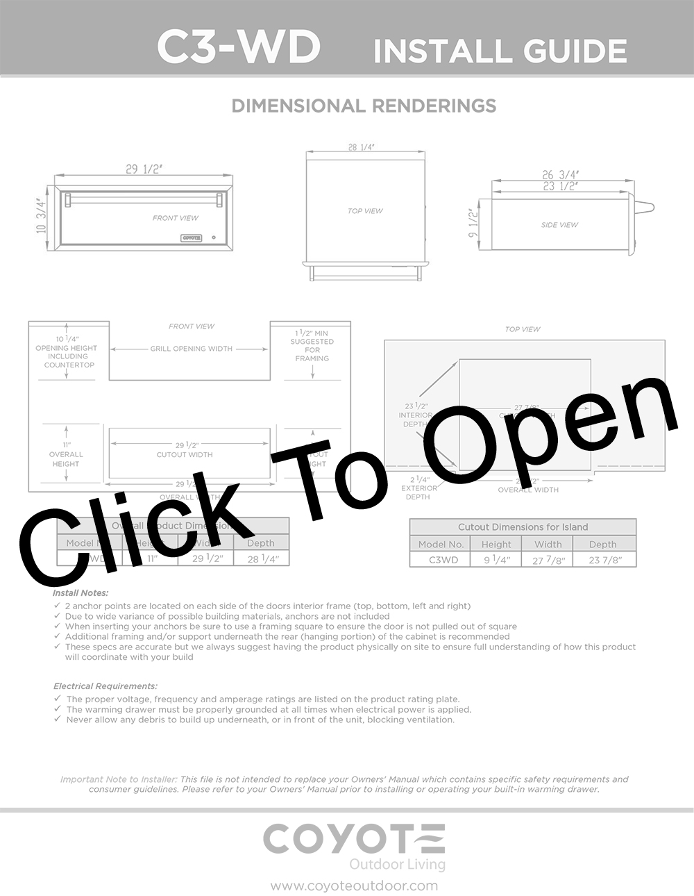 Coyote 30″ Outdoor Warming Drawer Features: