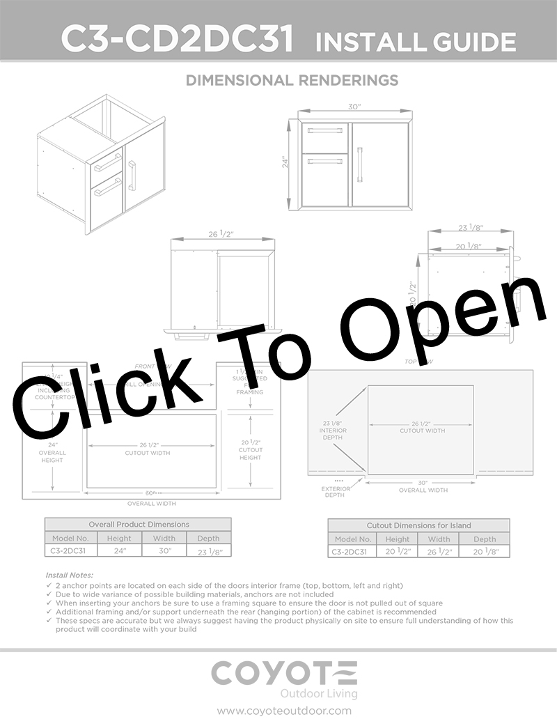 Coyote 31″ Access Door and Double Drawer Combo Features: