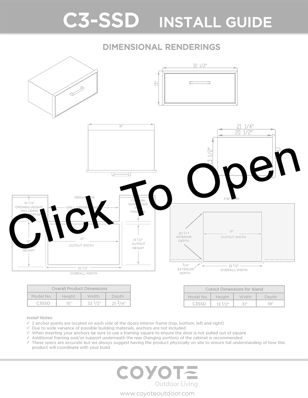 The Coyote 32″ Single Access Drawer is constructed of premium stainless steel, ensuring its quality and durability. The professional style handle is made of premium stainless steel, adding to the design of the drawers. This 32-inch storage unit has a large storage space within the drawer for BBQ tools and accessories. There is a shelf inside the door for additional storage space. The drawer features a professional-style door handle and opens easily. This access drawer is made from 18 gauge 304-grade stainless steel and finished with a beveled trim.