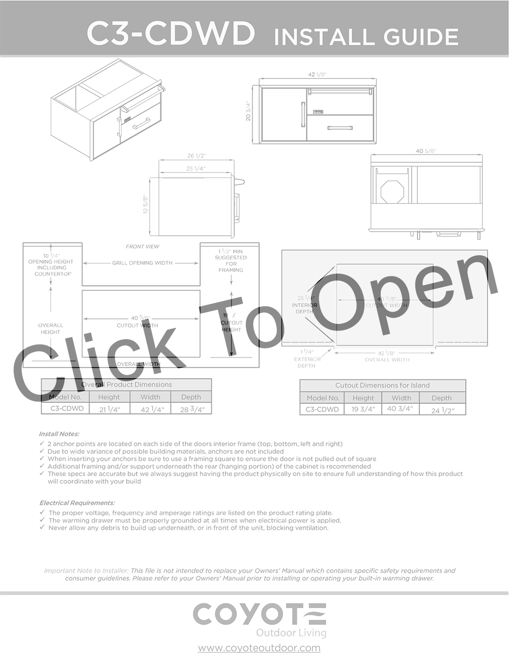 With its integrated warming drawer, organized storage, and refined aesthetics, the C3‑CDWD Coyote 42″ Access Door & Drawer Combo with Warming Drawer brings both function and elegance to your outdoor kitchen setup!