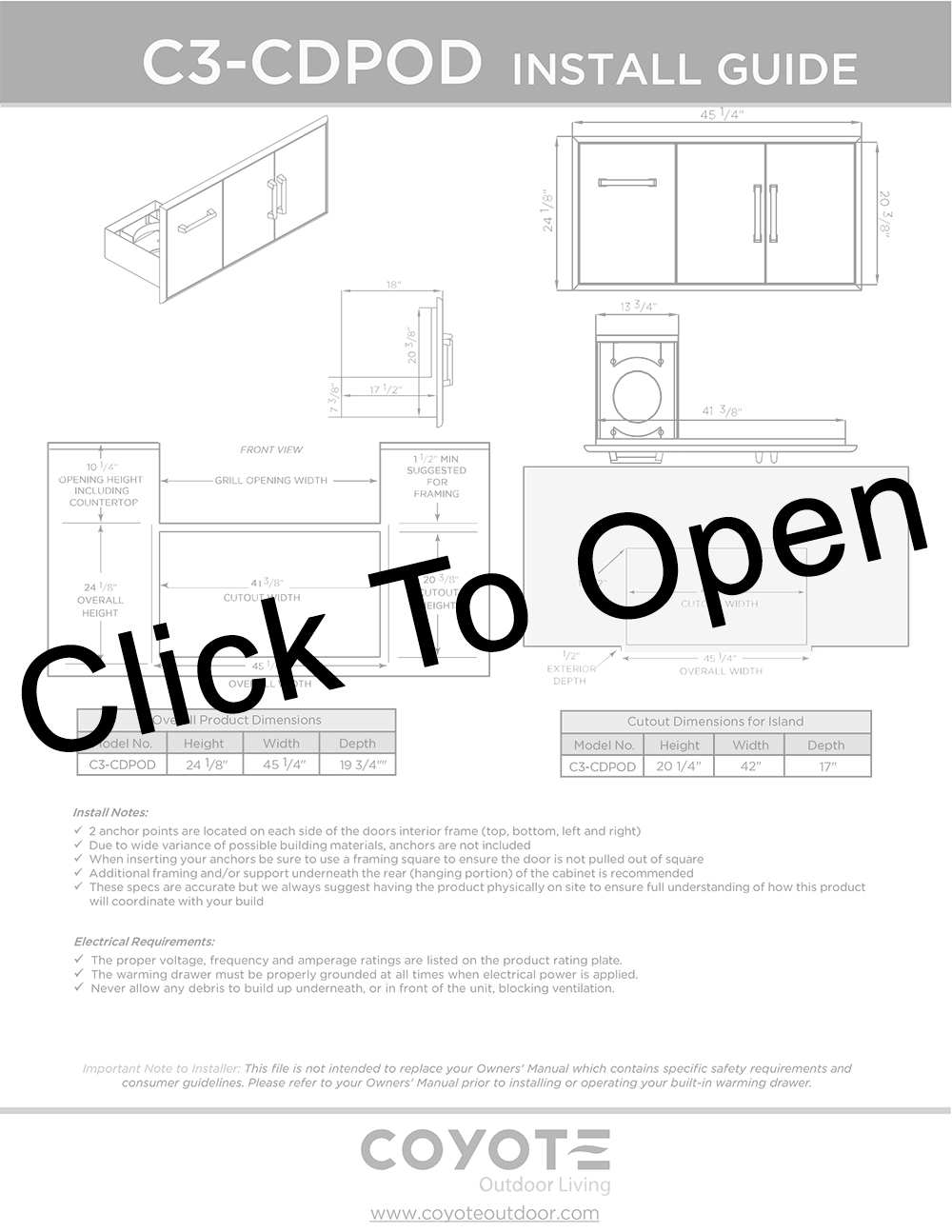 This high-functioning combo unit adds convenient, concealed storage and waste or tank access to your outdoor kitchen while matching Coyote’s upscale design and build quality!