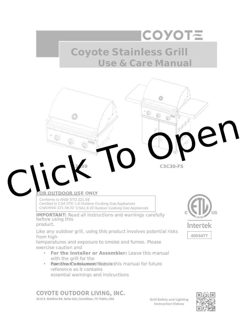 Coyote C-Series 30″ 3-Burner Freestanding Gas Grill Features: