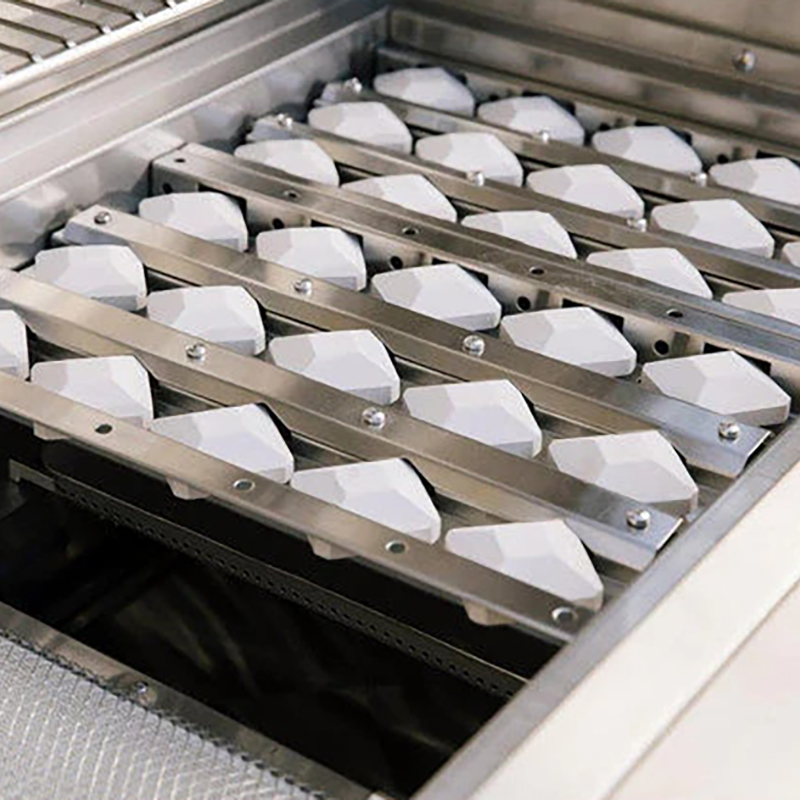 - Volcanic‑stone ceramic briquettes absorb and radiate heat for even heat distribution