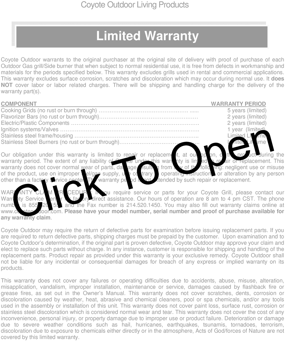 - Compatible with a range of Coyote grills—30″, 34″, 36″, 42″, and 50″