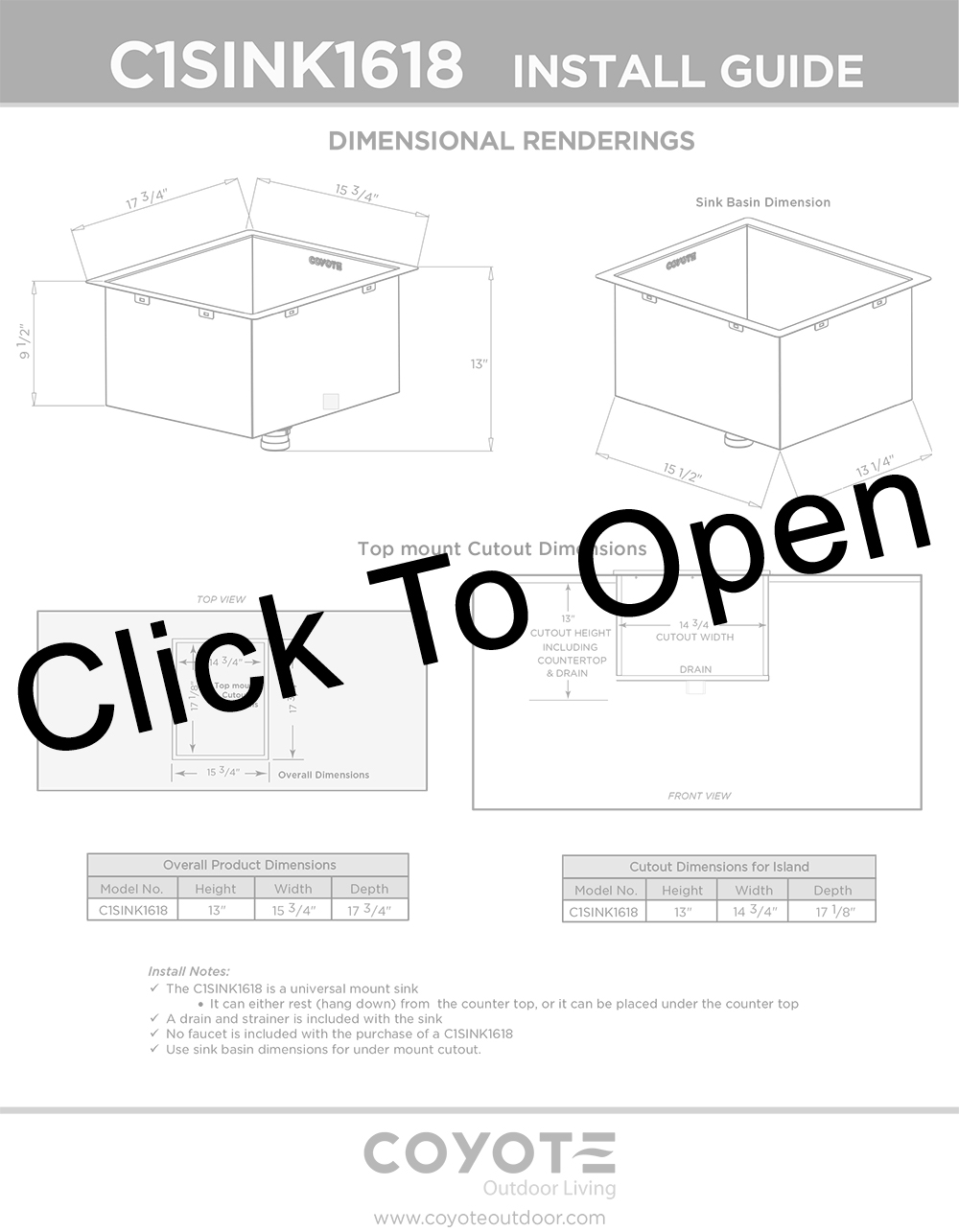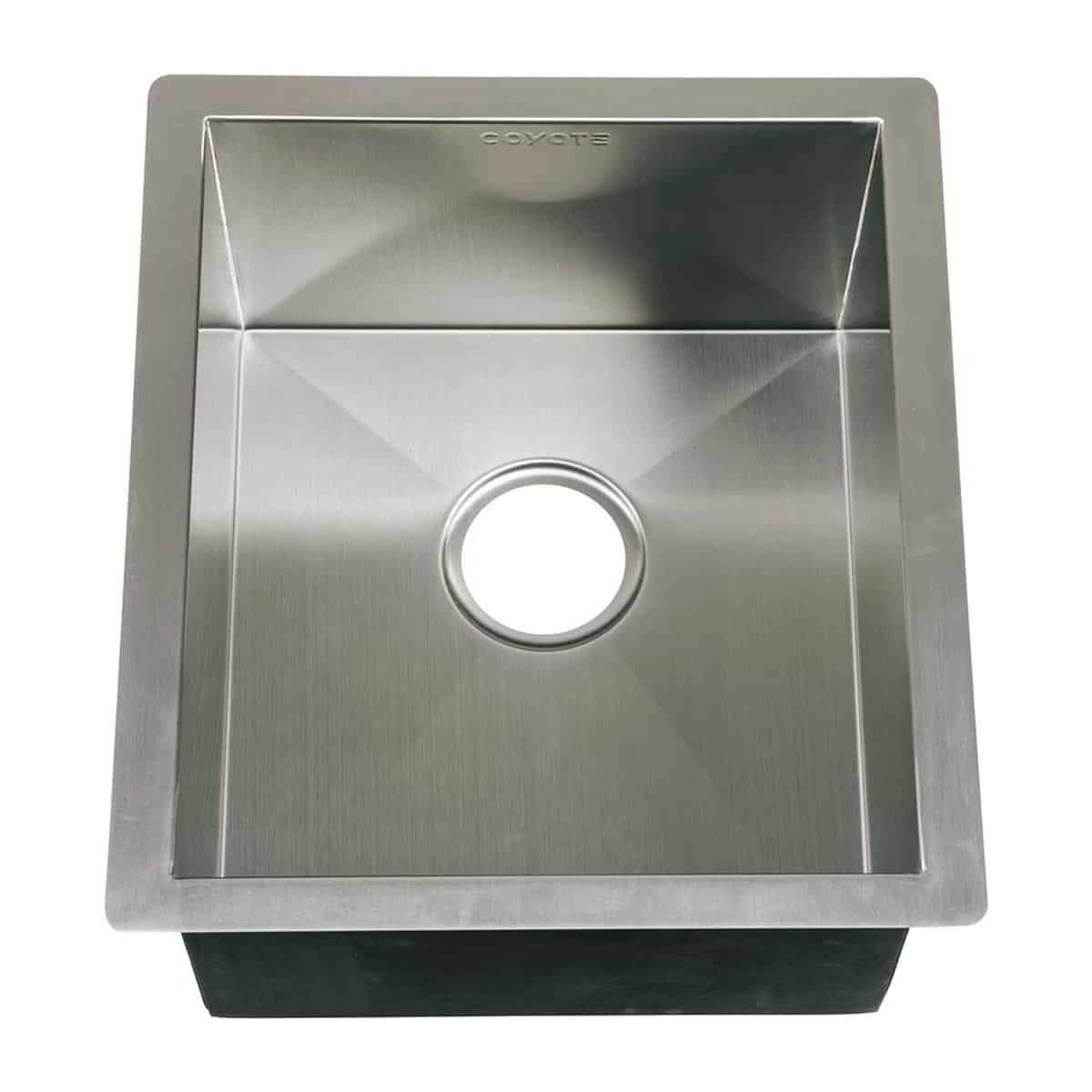 The Coyote Drop-In Stainless Steel Sink with Drain Plug is made with 18 gauge 304-grade stainless steel, providing a perfect match to your Coyote outdoor kitchen products. The C1SINK1618 is a universal mount sink and can rest on top of or below your counter top. A drain and strainer are included with the purchase of this item, and a compatible faucet must be purchased separately.
