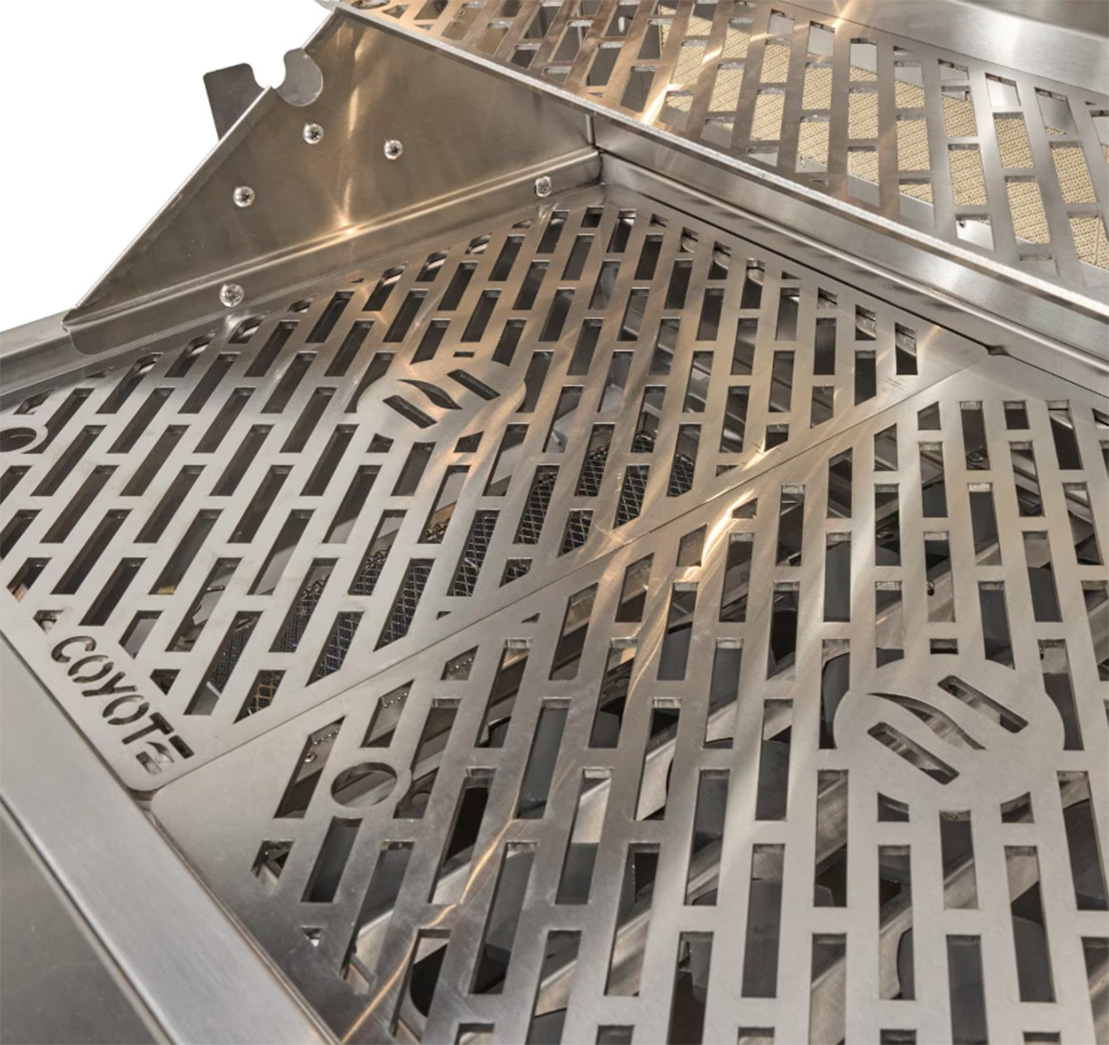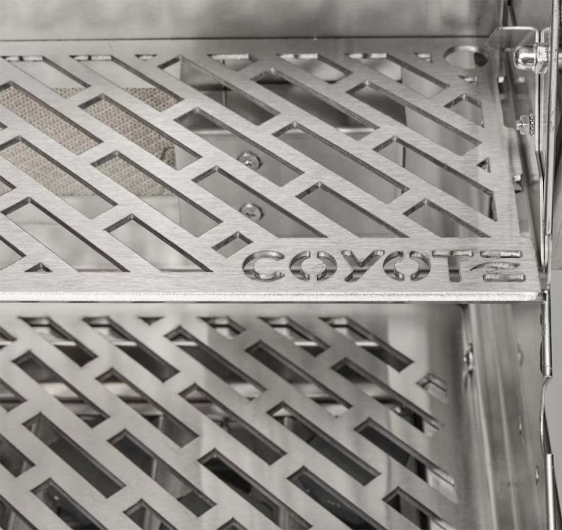 Enjoy expanded grilling options using the 15,000 BTU infrared rear rotisserie burner to create succulent, slow-roasted meals. Use the included smoker box to infuse your grilled food with delicious smoke flavor. The burners are lit by an easy to use, push and turn ignition system while the internal halogen grill lights will keep you grilling into the night. This Coyote grill also sports stylish, orange LED illuminated control knobs. Use the removable warming rack to keep food heated until serving time and easily monitor the temperature inside your grill using the integrated thermometer. Choose Coyote and create the outdoor kitchen of your dreams with a grill made to last and give remarkable performance.
